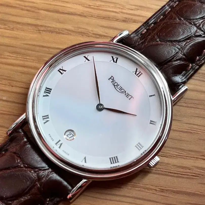 33mm 페키네 클래식 남성용 쿼츠 손목시계 스위스산