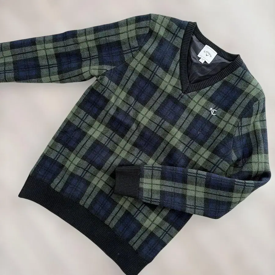 캘러웨이 체크 무늬 V넥 스웨터 M