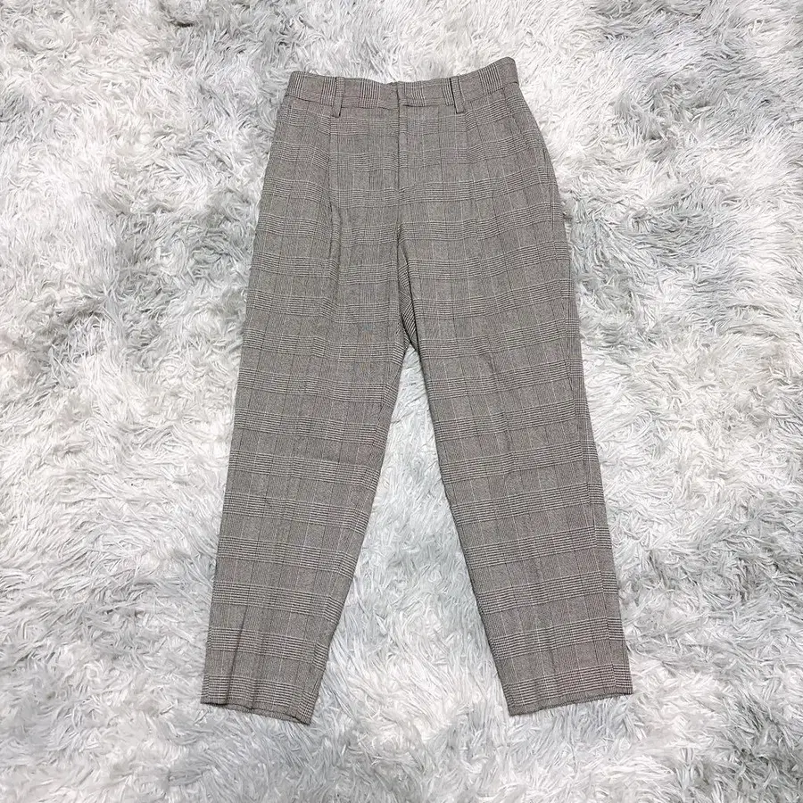INED 7 체크 무늬 테이퍼드 팬츠 그레이 출퇴근 포멀 레이온 혼방