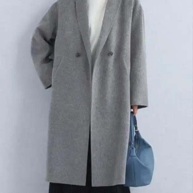• ROPE 그레이 롱 코트 허리 벨트 포함 캐시미어 혼방 사이즈 38