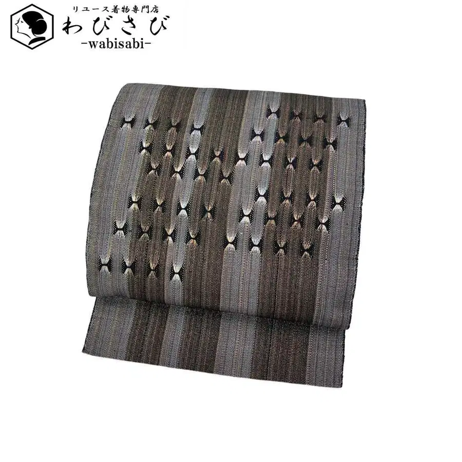 나고야 오비 모던한 아름다운 세로 패턴 직조 무늬 금실 O-4596