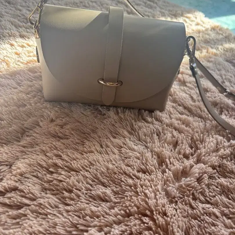 아이보리 천연 가죽 숄더백 체인 스트랩 포함