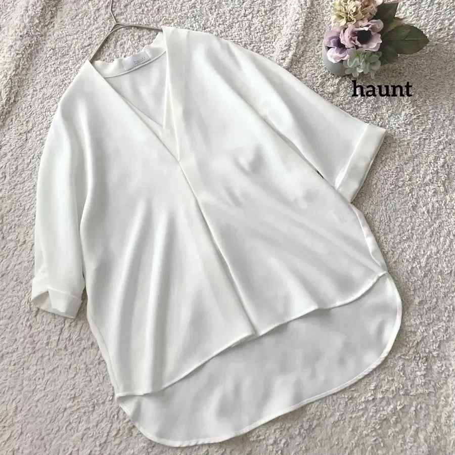 하운트 haunt 화이트 V넥 5부 소매 셔츠 38 일본제 오피스