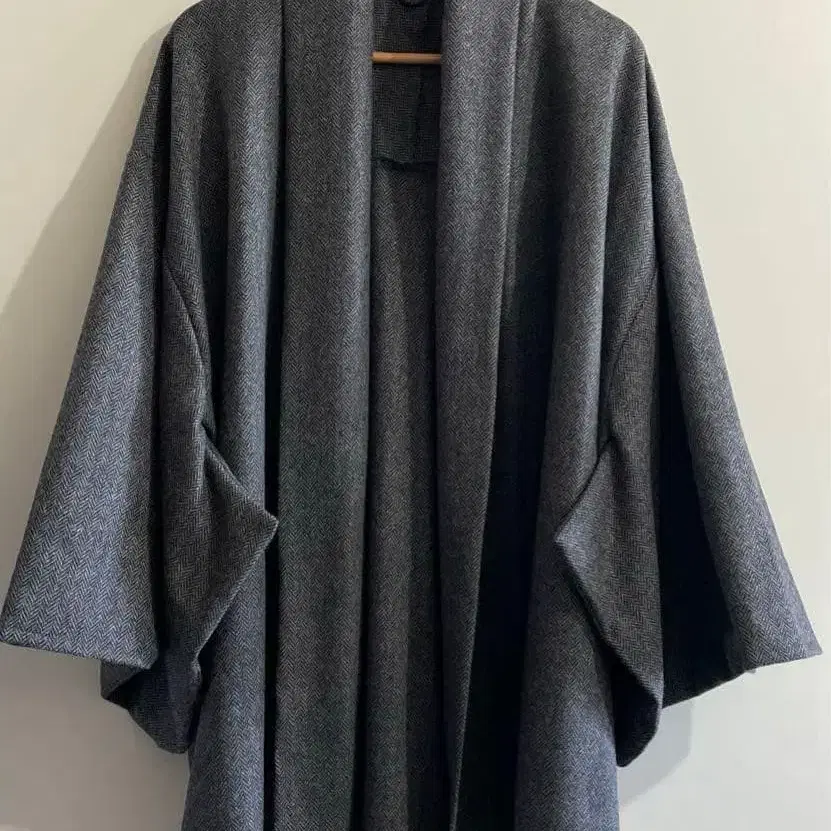 기모노 코트 일본 의류 코트 울 헤링본 그레이