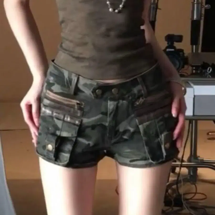 헤이세이 갸루 00s 카모플라쥬 카고 숏팬츠 Y2K 빈티지