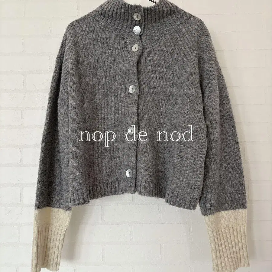 놉드노드 배색 니트 2way 가디건 하이넥 울 100%
