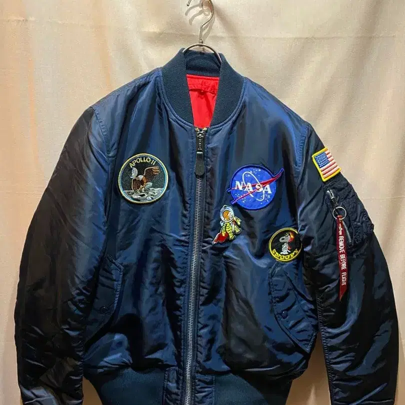 알파 NASA MA-1 플라이트 자켓 네이비 레드 XL