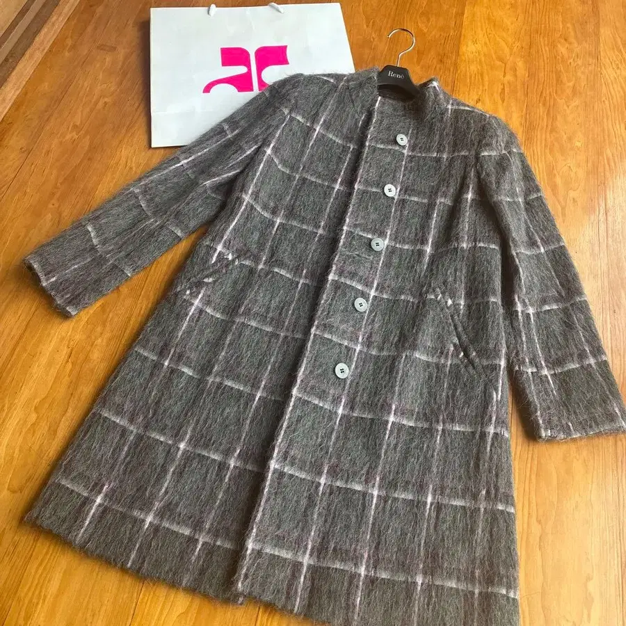 그레이 계열 체크 무늬 롱 코트