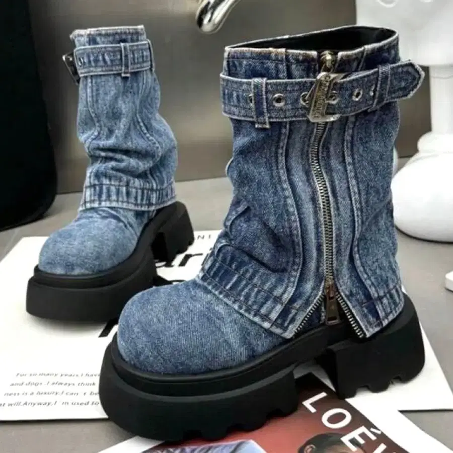 데님 통굽 숏부츠 23.5cm 미사용 새상품