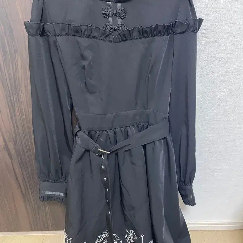 제이미 Ank 쿠로미 프릴 장식 블랙 긴팔 무릎 기장 원피스
