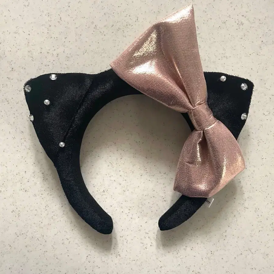 키티 머리띠 블랙 벨로아 핑크 리본 유니버셜