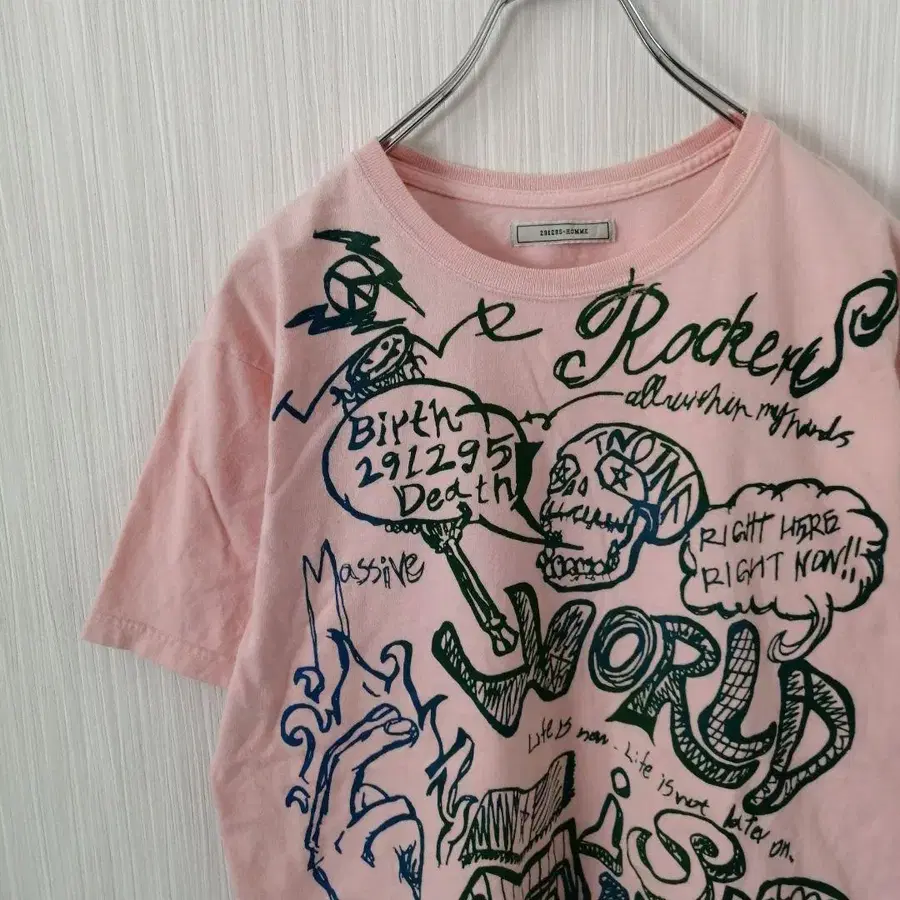 231235=HOMME T셔츠 반팔 스컬 핑크