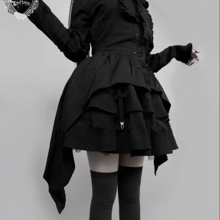 DimMoire 이레헴 리본 블라우스 & 폭신폭신 프릴 스커트 블랙