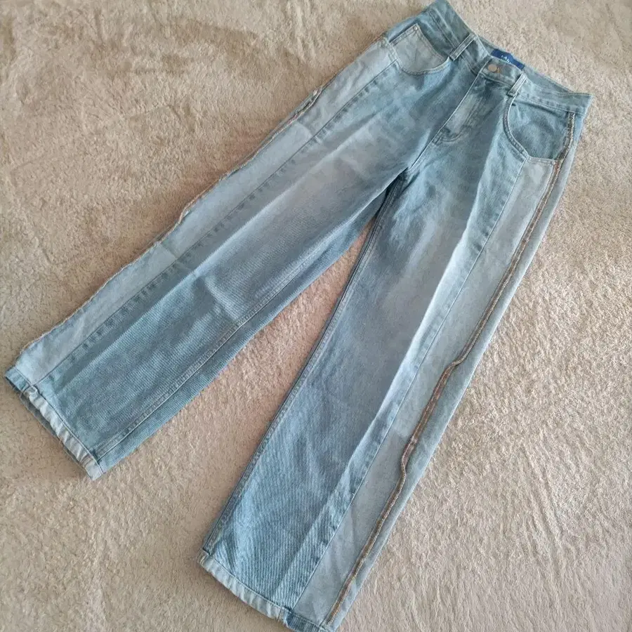 LANE 사이드 라인 절개 데님 팬츠 라이트 블루
