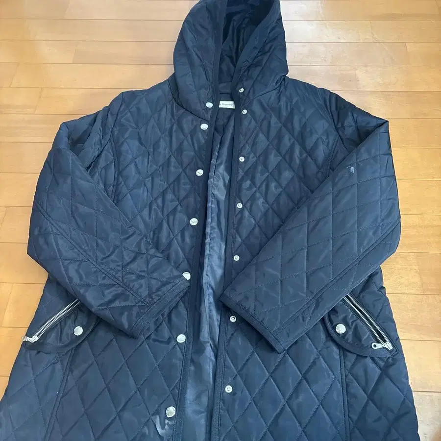블랙 퀼팅 자켓 후드 부착