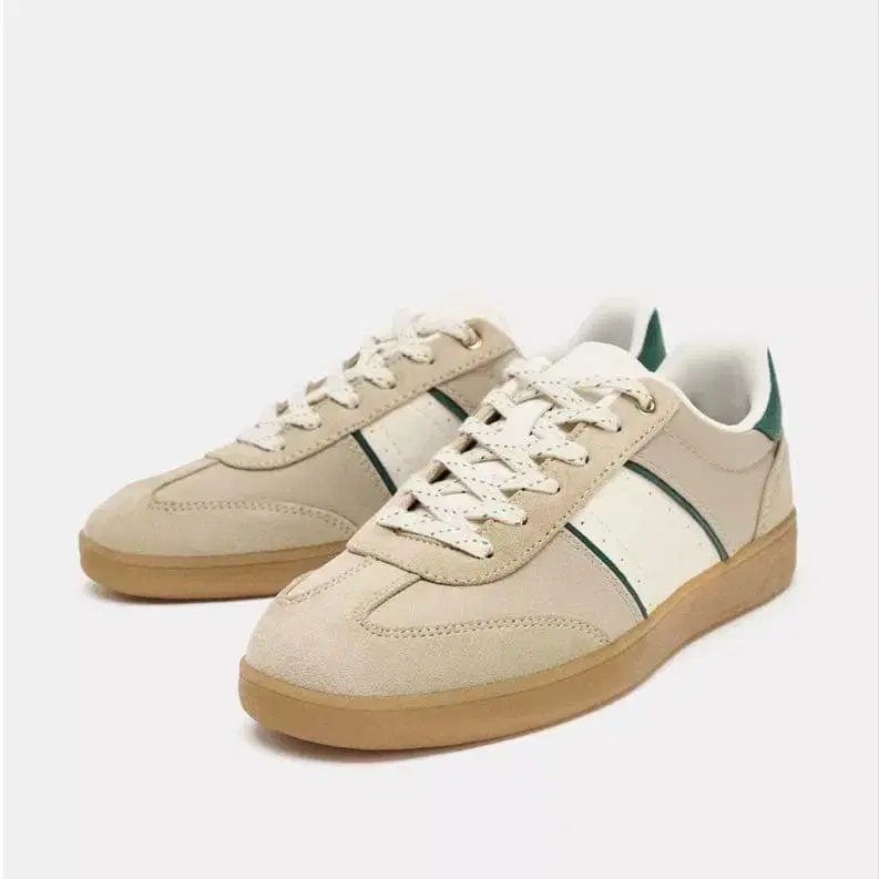 미사용 새상품 ZARA 베이지 스웨이드 스니커즈 그린 스트라이프