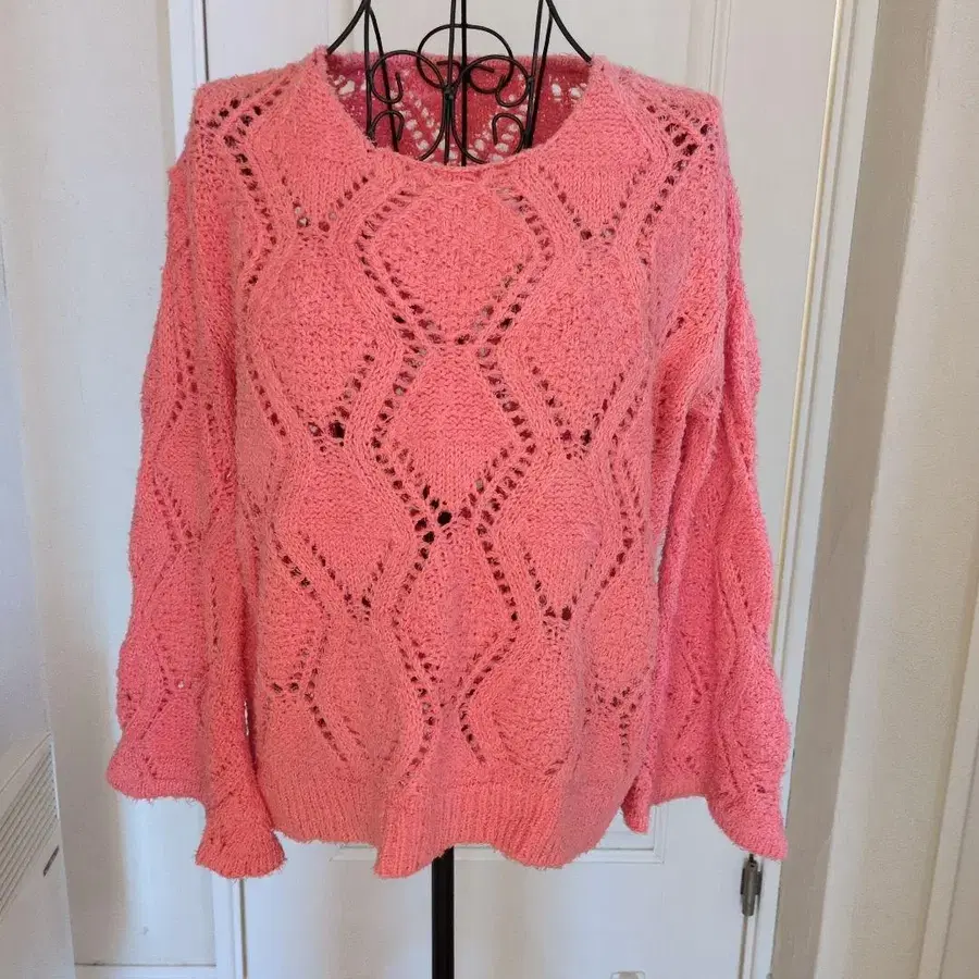그레이스 콘티넨탈 시스루 편직 핑크 니트 스웨터