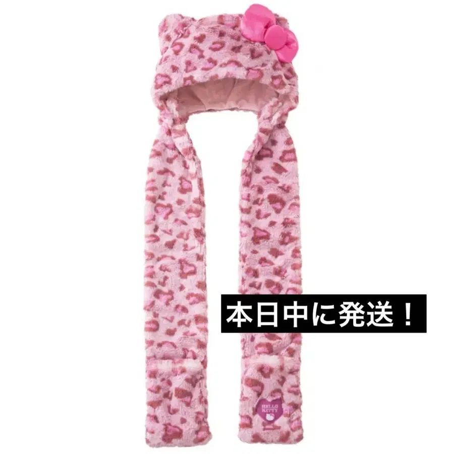USJ 유니버셜 머플러 햇 헬로키티 레오파드 무늬 핑크