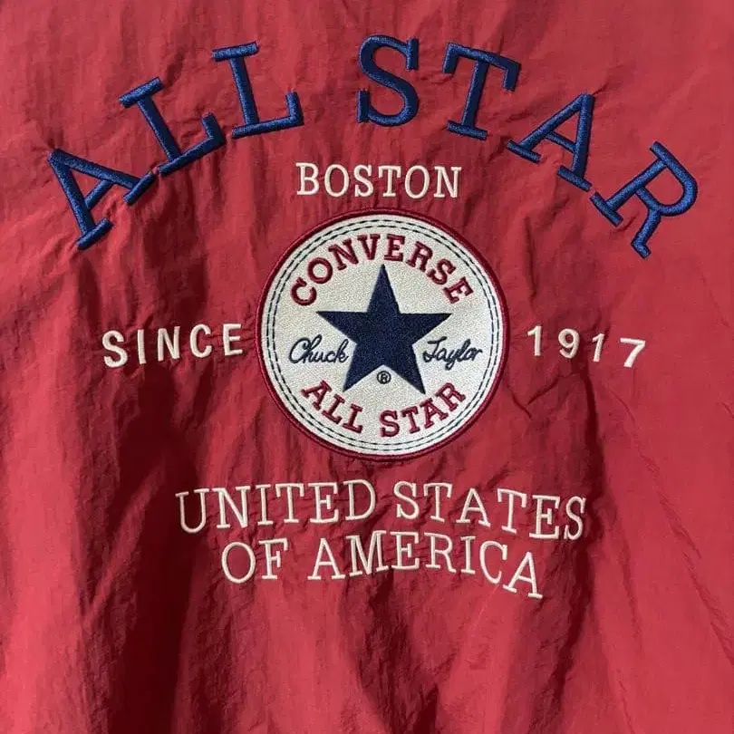 나일론 소재의 빨간색 자켓, 자수 로고 포함으로 캐주얼 스타일에 최적. - 브랜드: CONVERSE - 모델명: ALL STAR - 색상: 빨간색 - 디자인: 버튼식, 스트라이프 옷깃 - 특징: 자수 로고, 백 프린트 - 소재: 나일론 방문해 주셔서 감사합니다.