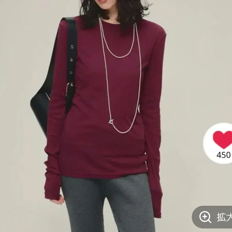 보르도 버건디 긴팔 티셔츠 시어 롱
