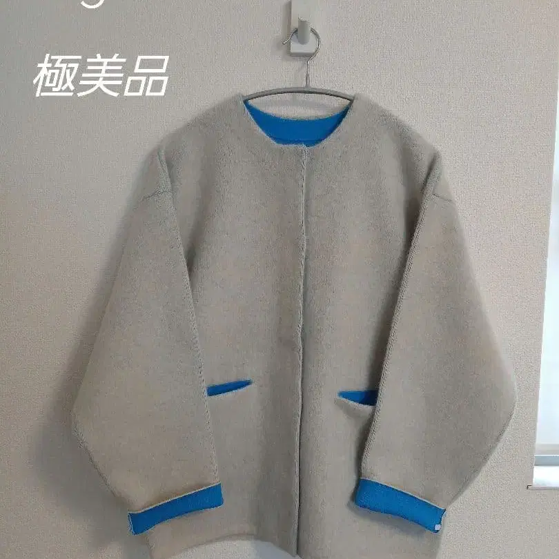 컨디션 최상 Aga 크루넥 바이컬러 니트 가디건 블루/화이트