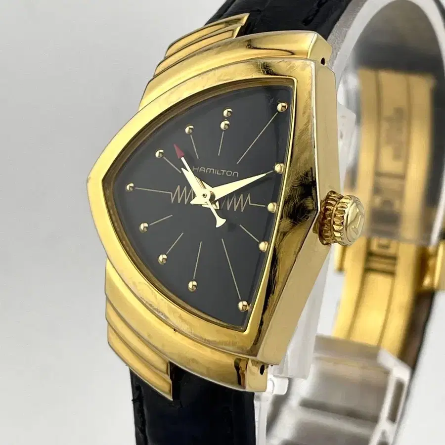 작동 됨, 간단한 클리닝 완료된 벤츄라 손목시계 워치 가죽 남성용 골드 블랙 블랙 다이얼