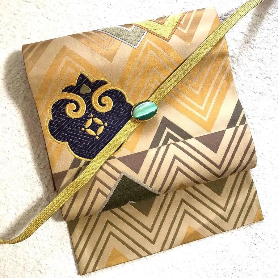 순수 실크 후쿠로 오비 컬러풀한 지그재그 고전 모던
