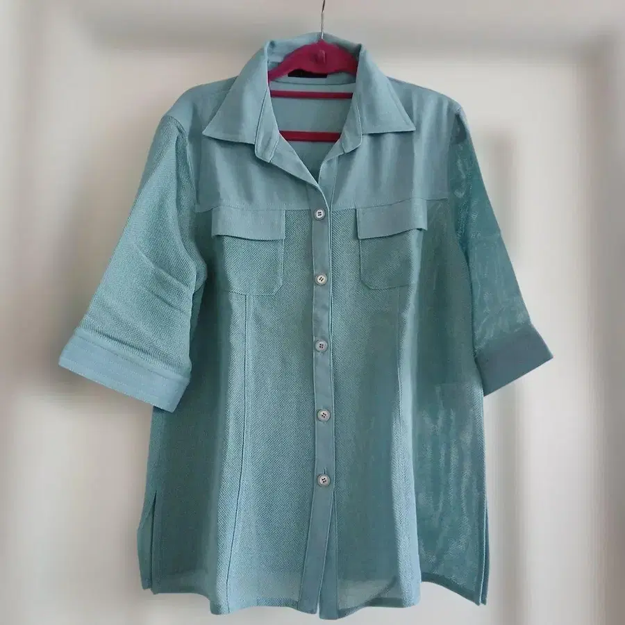 Leilian 레리안 오부소매 오버 블라우스 13플러스 스카이블루