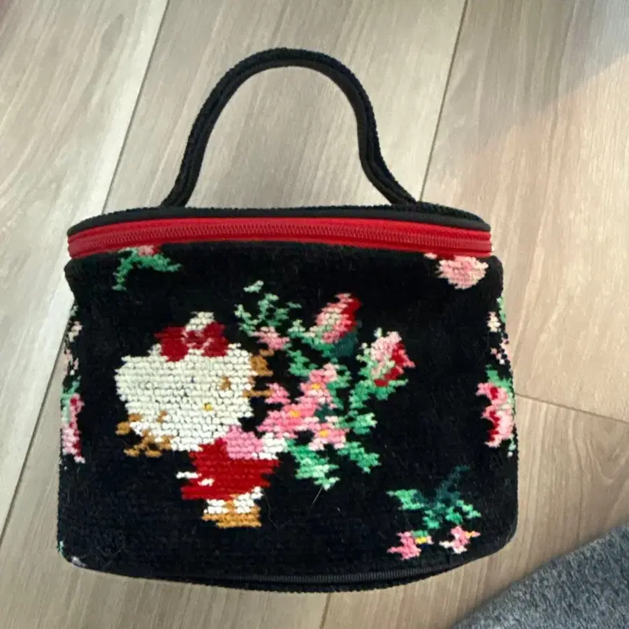 FEILER 꽃무늬 자수 파우치 블랙 헬로키티
