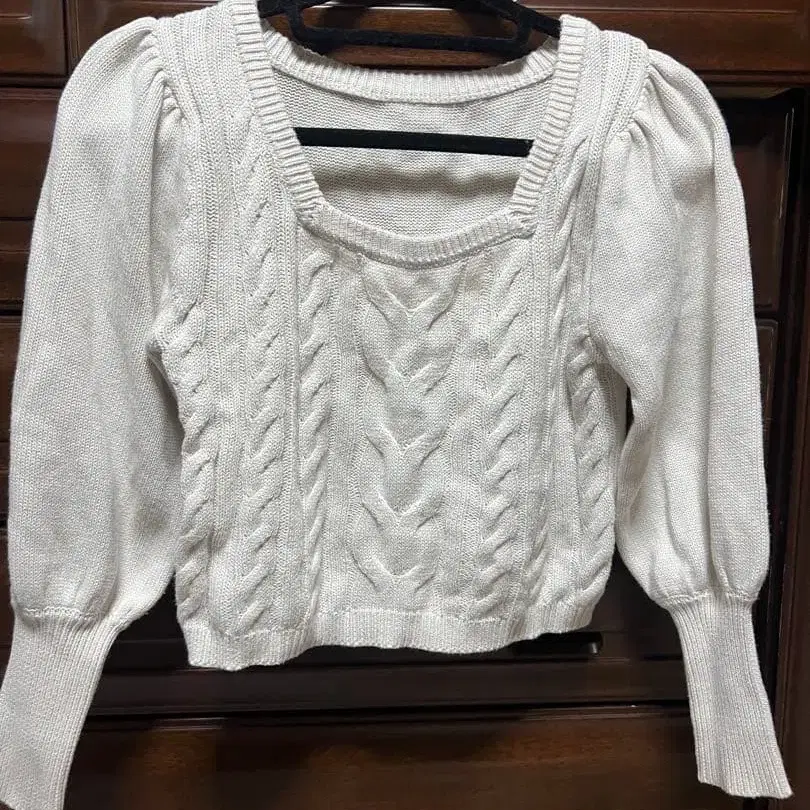 화이트 케이블 니트 퍼프 슬리브 스웨터 M