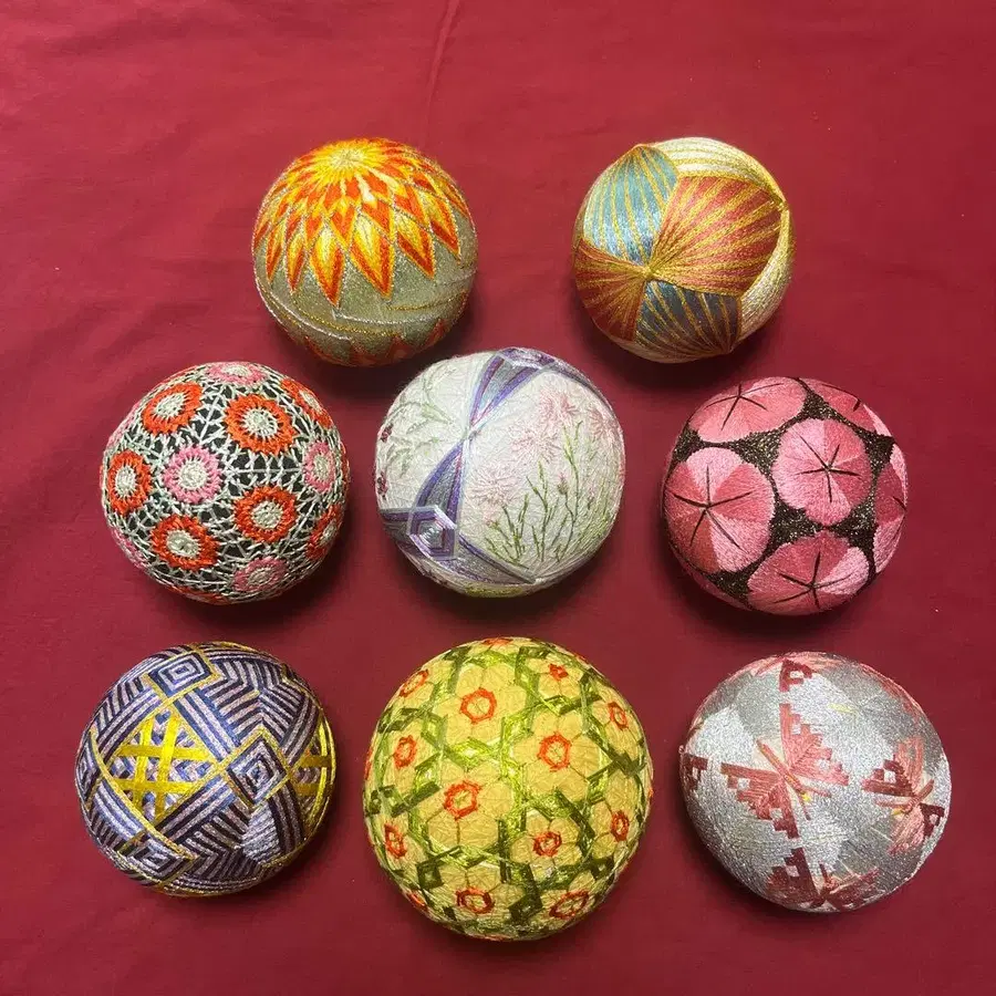테마리 자수 무늬 패브릭 소재 볼 (다색) 8개