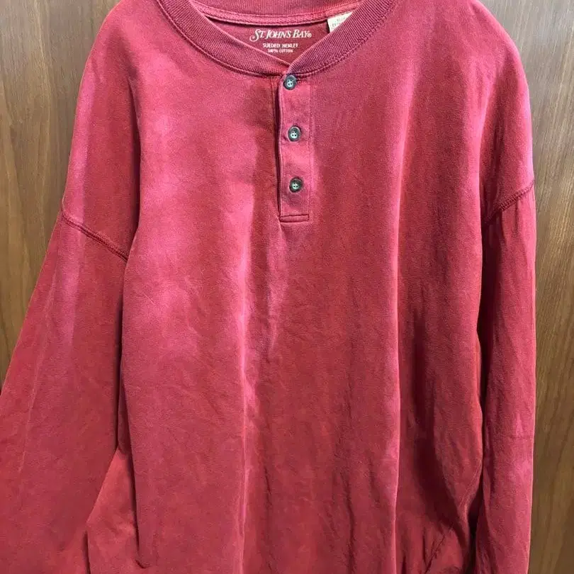 ST. JOHNS BAY 코튼 100% 레드 헨리넥