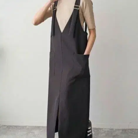 커팅이 깊은 V넥은 어른스럽고, 골드 버클이 악센트가 됩니다.