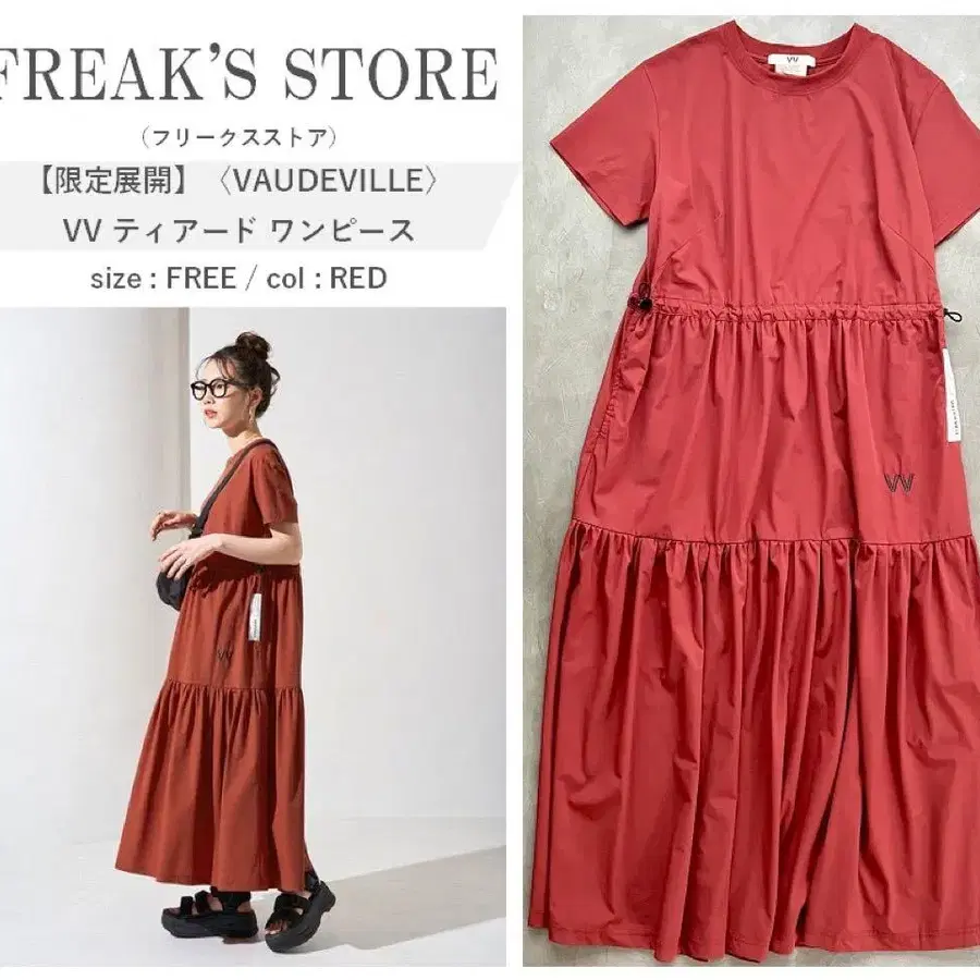 [ 한정판 전개 ] FREAK'S STORE 프릭스스토어 25SS 〈 VAUDEVILLE / 보드빌 〉VV 티어드 원피스 스포티 x 페미닌 RED 관리번호 [ 25016-1612-0002 ] ■ 브랜드: FREAK'S STORE ■ 아이템: [ 한정판 전개 ] 〈VAUDEVILLE/보드빌〉 VV 티어드 원피스 ■ 색상: RED ■ 소재: 본체: 88% 폴리우레탄 12%, 리브 부분: 폴리에스테르 73% 면 25% 폴리우레탄 2% ■ 부속품: 없음 ■ 품번: 1314397100003 ■ 정가: 9,900엔 ■ 사이즈: Free (가슴 너비 104cm, 어깨 너비 44cm, 기장 120.8cm, 소매 길이 17cm) 심플하면서도 트렌디한 느낌의 티어드 디자인 반팔 원피스. - 브랜드: FREAK'S STORE - 모델명: VV 티어드 원피스 - 사이즈: FREE - 색상: RED 방문해 주셔서 감사합니다. 사이즈 - FREE SIZE
