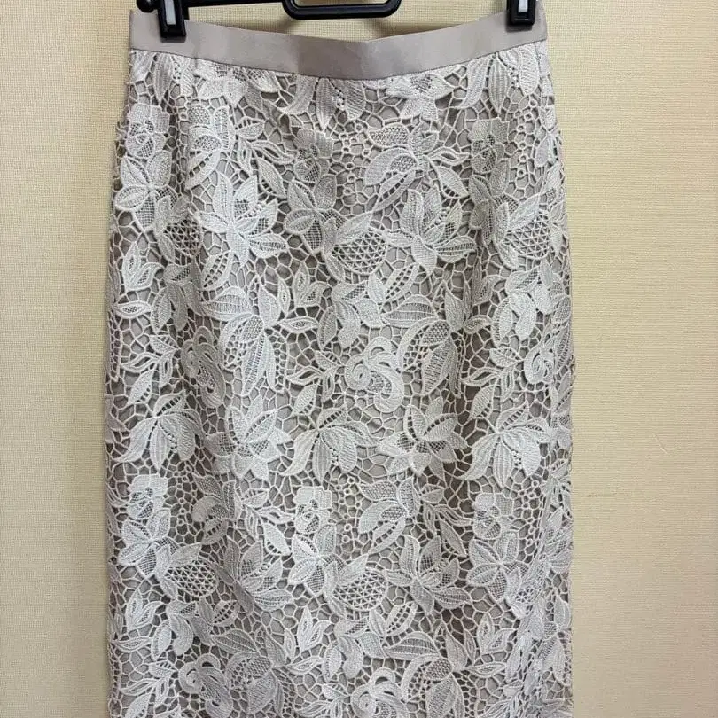 화이트 꽃무늬 무릎 기장 레이스 타이트 스커트