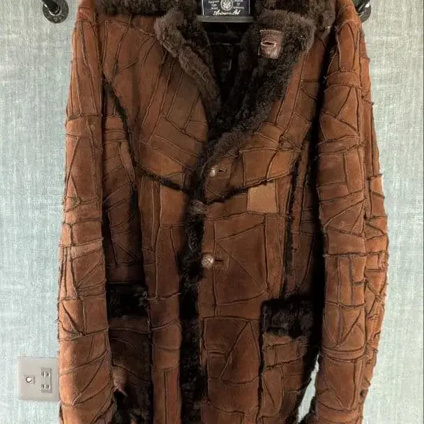 AVIREX 양가죽 브라운 무스탕 패치워크 코트