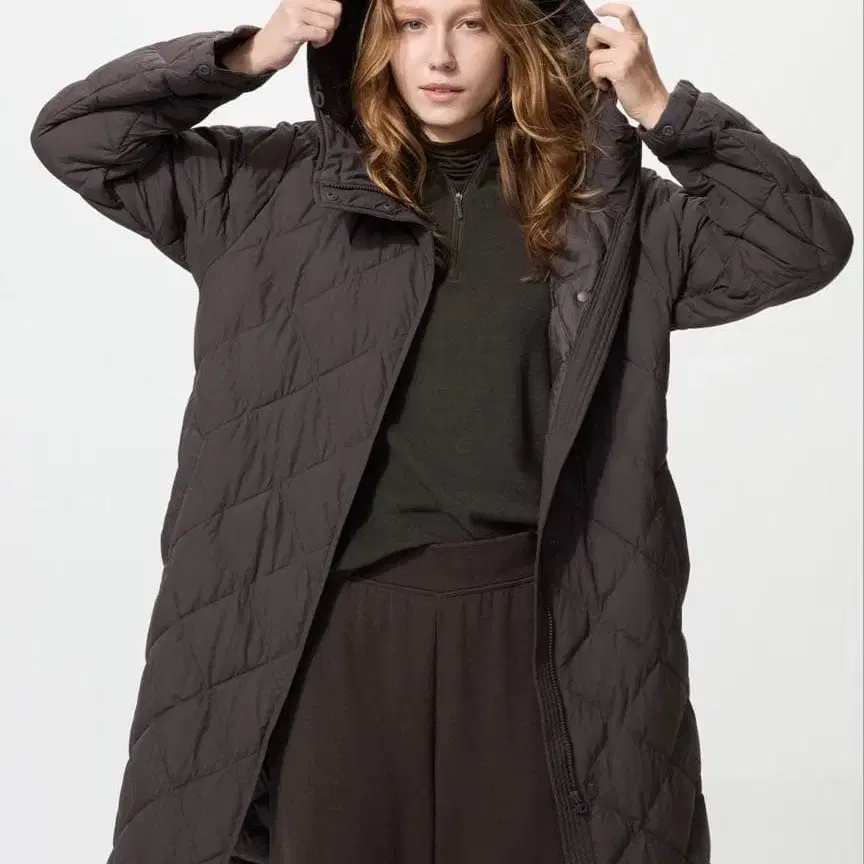 유니클로 퍼프 테크 롱 코트 릴랙스 핏 다크 브라운 L