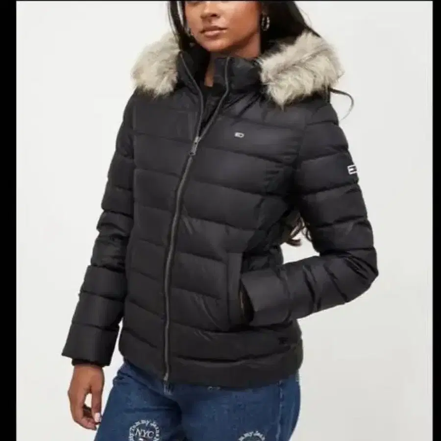 컨디션 최상 TOMMY JEANS 후드 부착 로고 다운 자켓