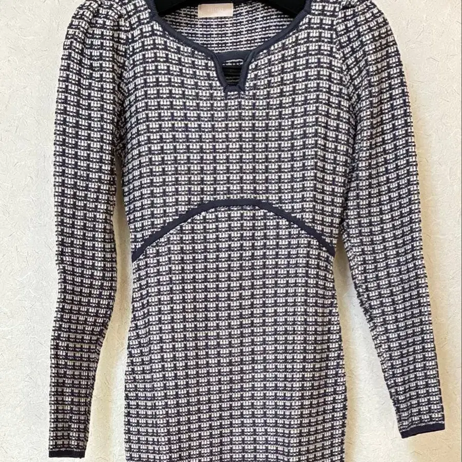 리젝시 바이컬러 트위드 니트 원피스 블루