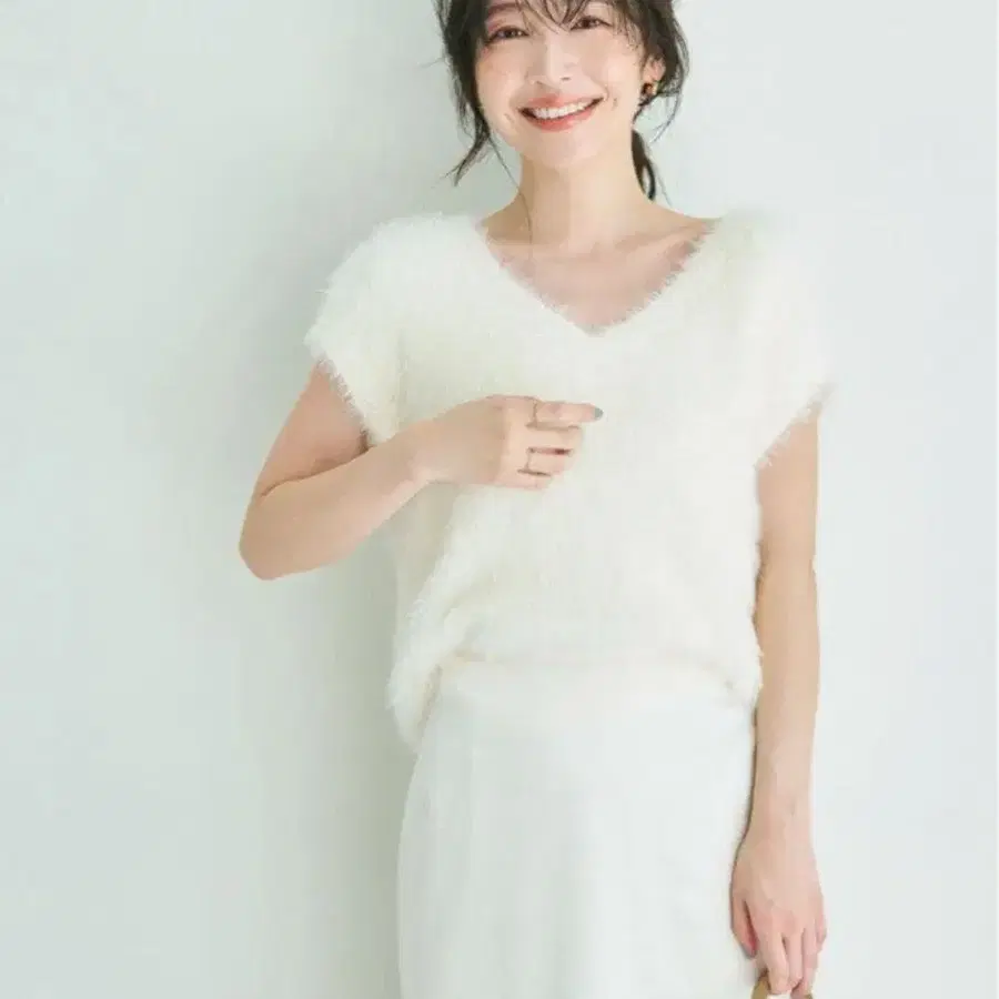베이스먼트 온라인 샤기 V넥 베스트 화이트