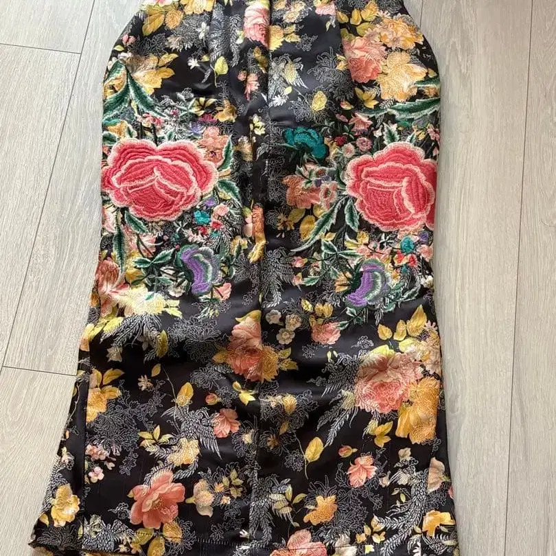 아차츄 꽃무늬 자수 타이트 스커트 머메이드 블랙