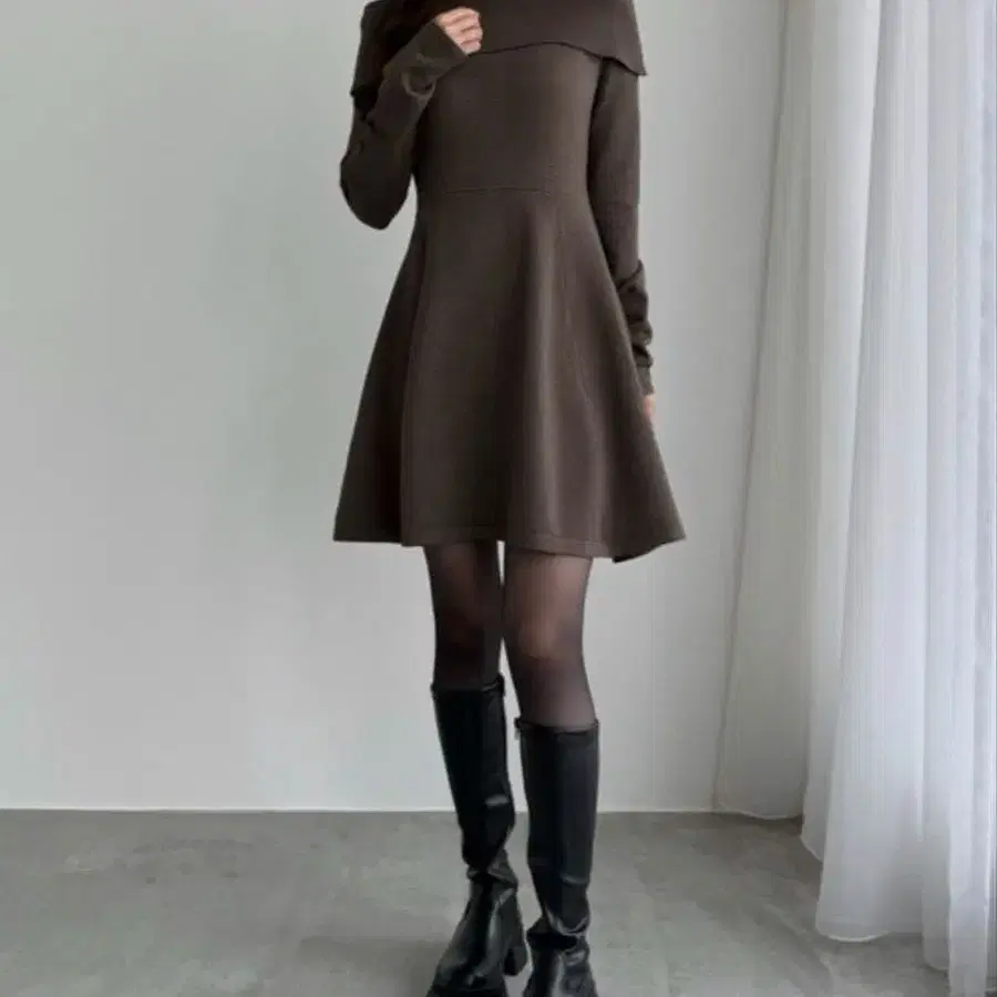 CENEA 오프숄더풍 스퀘어넥 미니 니트 원피스 MT 사이즈 차콜
