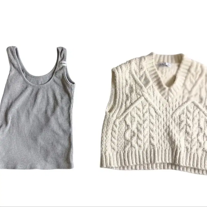 [ 1/4까지 한정 겨울 세트 ] 그레이 탱크탑과 아이보리 니트 베스트
