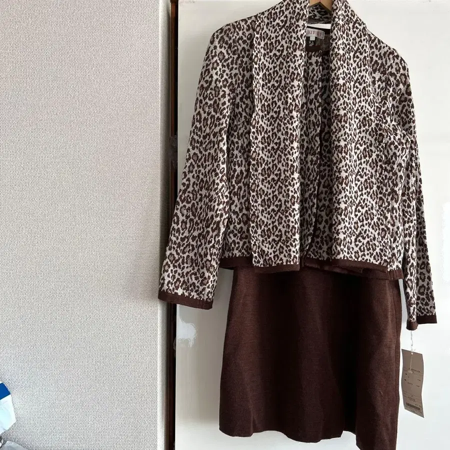 토리이유키의 레오파드 무늬 자켓과 브라운 스커트 셋업
