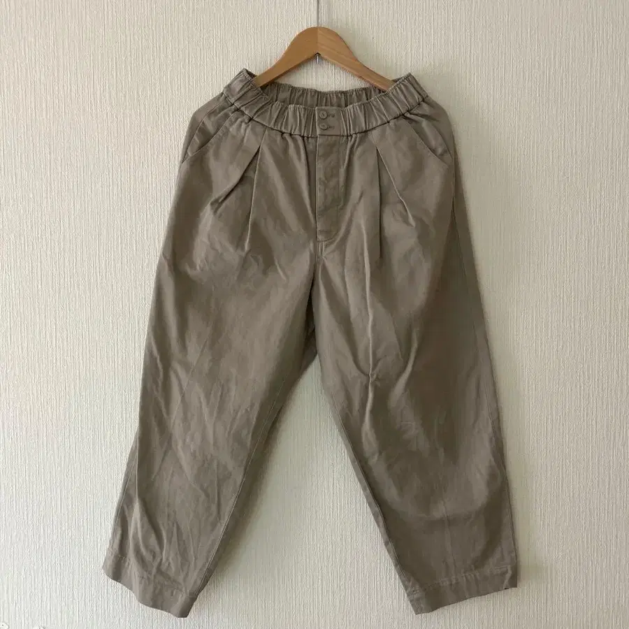 총길이 88cm 인심 59cm 흠집/얼룩은 보이지 않지만, 사용감은 느껴집니다. 허리밴딩과 턱이 들어간 베이지 와이드 팬츠. - 색상: 베이지 - 디자인: 허리밴딩, 버튼 포함, 턱 포함 - 포켓: 뒤쪽에 포켓 있음 - 스타일: 와이드 팬츠 사이즈 - FREE SIZE