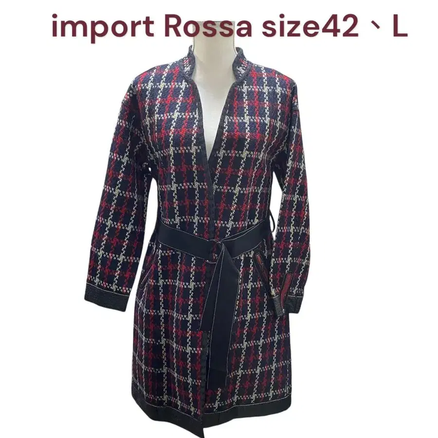 새상품급 수입 로사 트위드 벨트 롱 코트 42, L, 11호