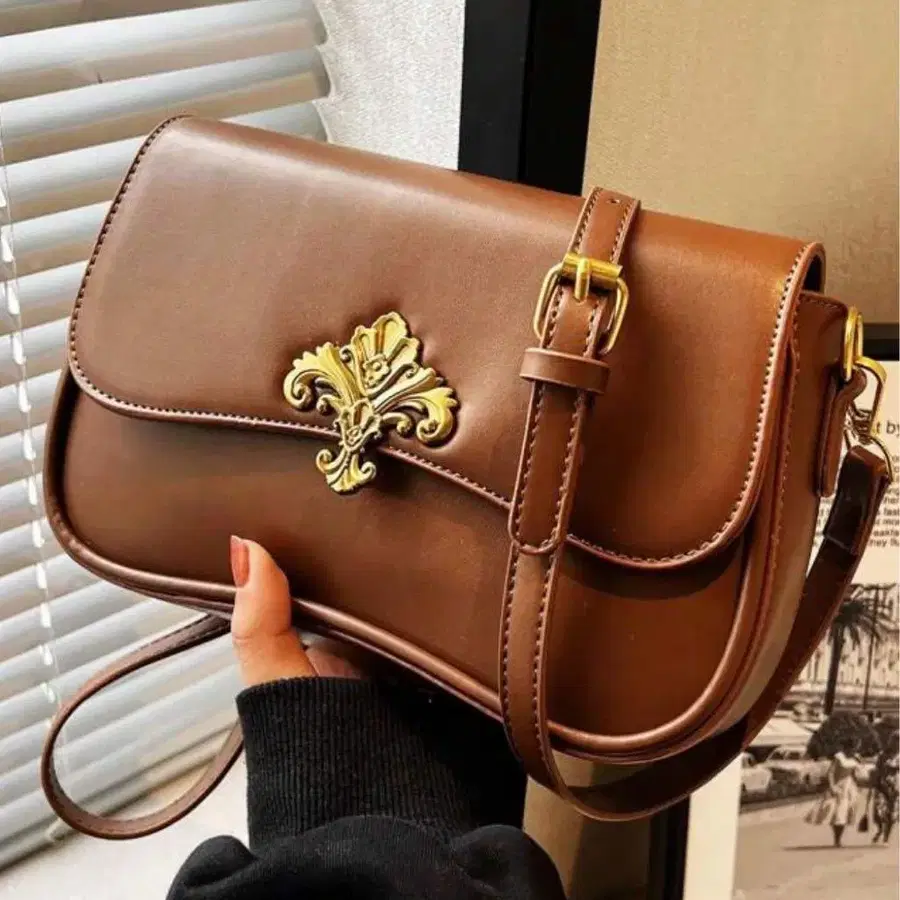 깊이 있는 브라운 색상이 성숙한 고급스러움을 돋보이게 하는 왕홍 스타일 숄더백.