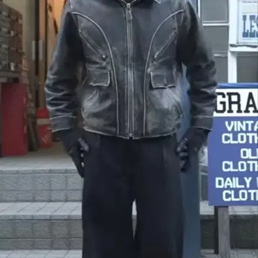 RUDEGALLERY 루드 갤러리 올 블랙 더블 가죽 자켓