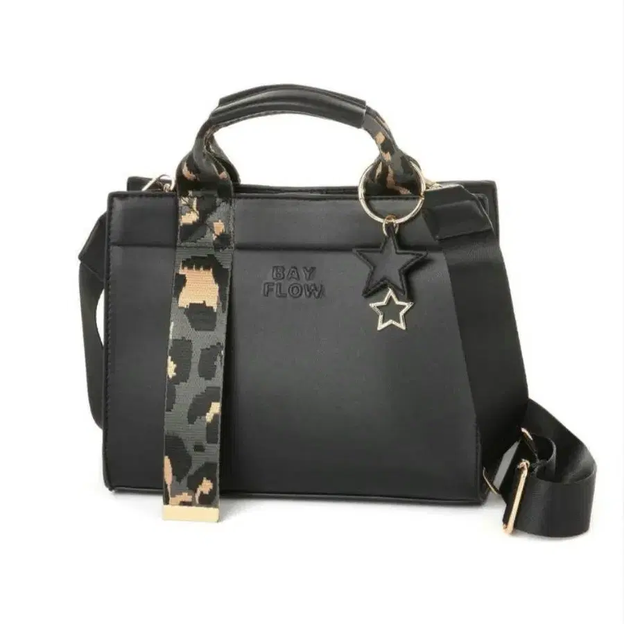BAYFLOW 레오파드 무늬 스트랩 포함 블랙 숄더백