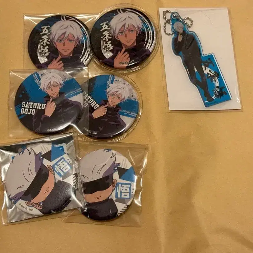 고죠 사토루 캔뱃지와 아크릴 스탠드 세트. - 캐릭터명: 고죠 사토루 - 수량: 6개 세트 - 디자인: 캔뱃지와 아크릴 스탠드 - 색상: 파랑과 블랙 - 소재: 아크릴과 금속 방문해 주셔서 감사합니다.